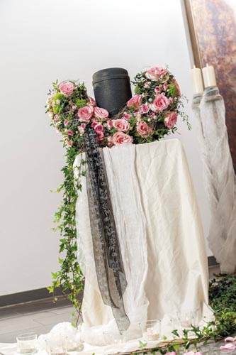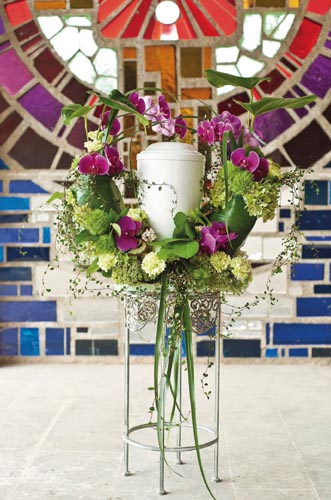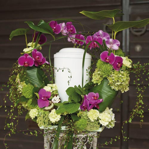 Locul urnei cc. 16 cm, margine cca 30 cm, 100% compostabil. Oază trebuie culcată în apă ca să se imbibe, după care se întoarce și se udă spatele. Nu se pune sub apă sau nu se stropește de sus..