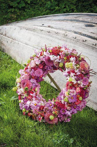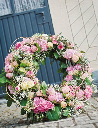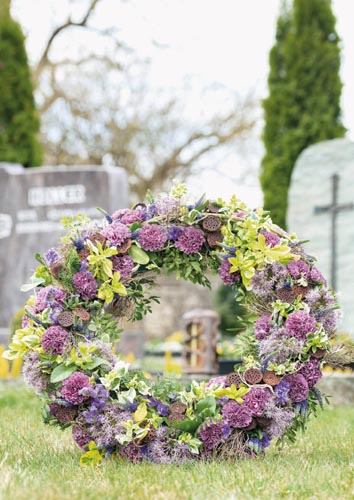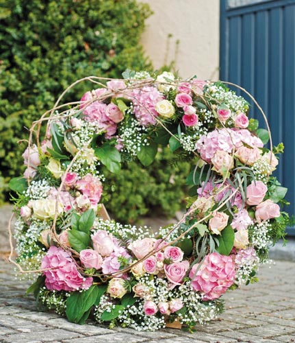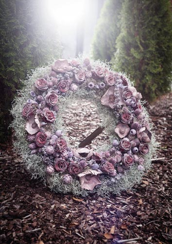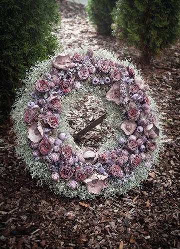 Coroană deosebită 'oază umedă' este învelită cu plasă de sârmă si prevăzuta cu sprijin din lemn de fag. 36 cm