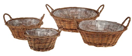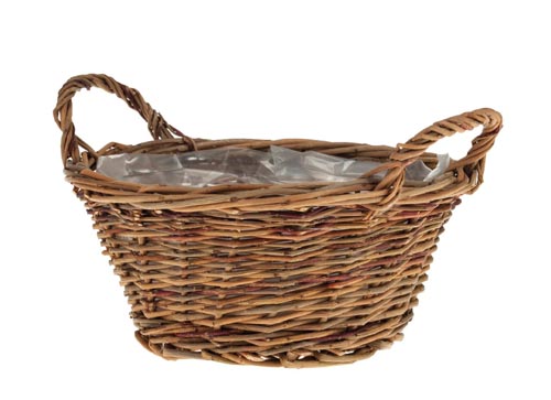 Coș împletit din iarbă de stuf, oval, 2 piese, 22, 5 x 16, 5 x 14 cm, 27, 5 x 22, 5 x 15, 5 cm