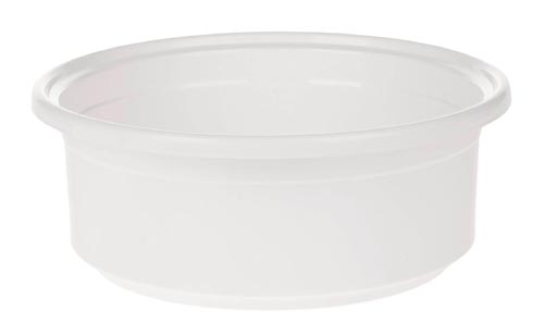 Tavă plată, rotundă de plastic, în culore albă. Se poate umple cu pamânt sau oază.