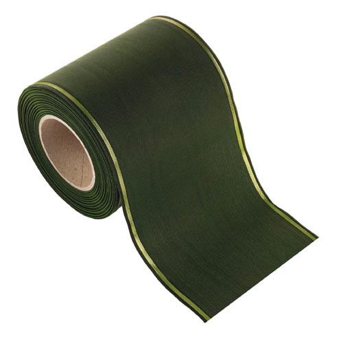 Panglică Morié cu marginea aurie verde de brad 100 mm x 25 m