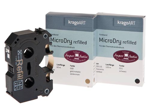 Potrivită pentru imprimare pe panglică din satin. Compatibilă cu următoarele imprimante: Thermo-Transferdrucker Oki: DP 5000S, Citizen: Printiva 1700-700 și Alps: MD 1000 + MD 2010.