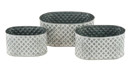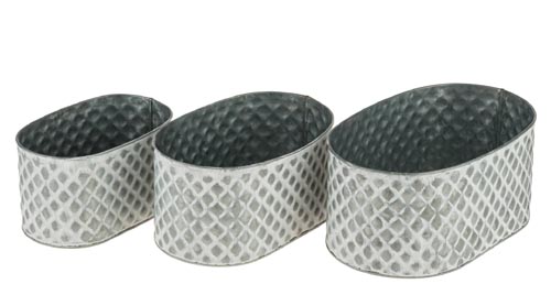 Ghiveci de tablă, gri deschis, 3 piese, 1 buc, ø 14 x 11, 5, ø 16 x 13, 5, ø 18 x 15, 5 cm
