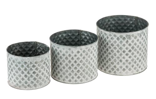 Ghiveci de tablă, gri deschis, 3 piese, 1 buc, ø 14 x 11, 5, ø 16 x 13, 5, ø 18 x 15, 5 cm