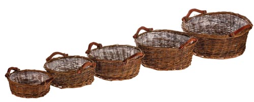 Coș nuiele, natur, 5 piese, 1 buc, ø 20 x 7 cm, ø 24 x 9 cm, ø 28 x 11 cm, ø 32 x 13 cm, ø 37 x 15
