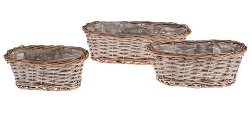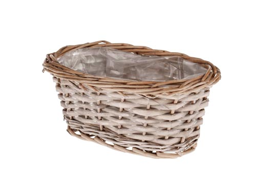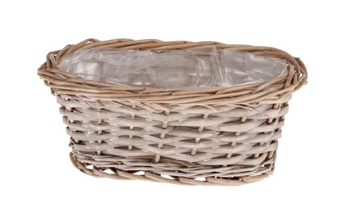 Coș nuiele, gri, oval, căptușit cu folie, 20 x 13 x 8 cm