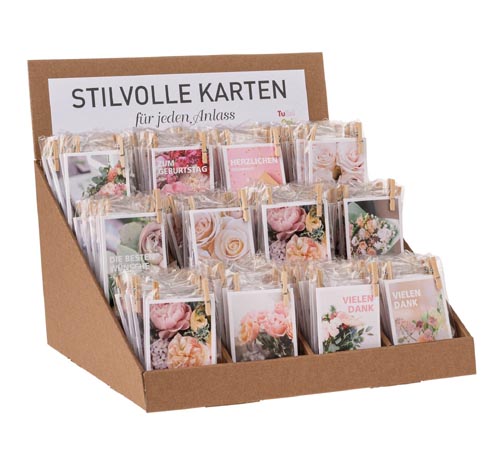 210285 Display carduri, natural, 240 buc, 3 x 17 cm, 12 modele