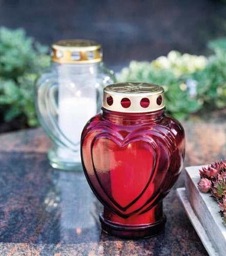 210359 Lanternă funerară – formă de inimă, roșie, 11, 5 x 10 x 18 cm