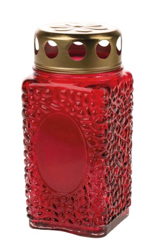Candelă funerară din sticlă, roșie, pătrată, 6 x 6 x 13, 5 cm