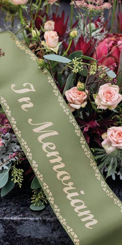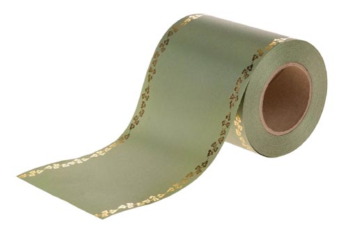 Panglică coroană din satin de înaltă calitate cu chenar auriu imprimat elegant (motiv chihlimbar) în diferite lățimi. Lungime: 25 m.